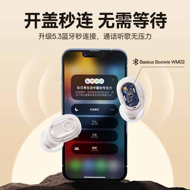 倍思wm02蓝牙耳机2025新款无线高音质入耳式降噪睡眠运动女长续航