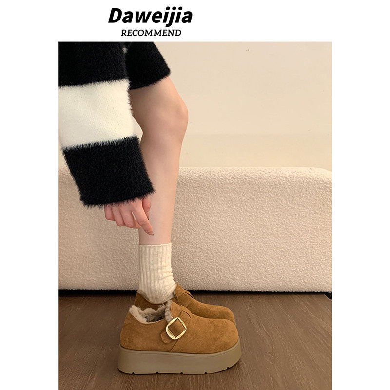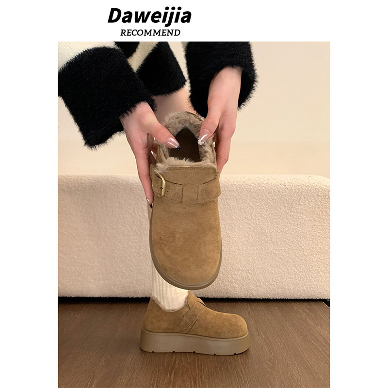松糕厚底增高加绒全包勃肯鞋女鞋子2025新款雪地靴毛绒棉鞋乐福鞋