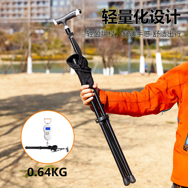 便携式折叠拐杖凳子户外爬登山杖老人助力拐杖凳折叠带伸缩手仗便