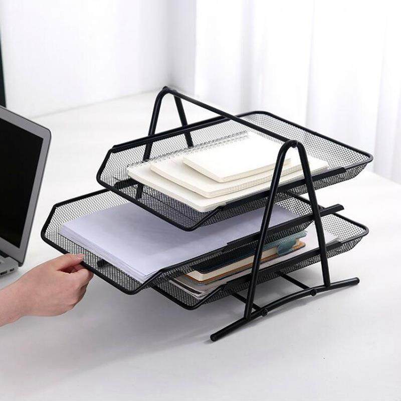 办公桌收纳置物架文件收纳盒办公用品文件架桌面书架多层大容量文件框文件夹A4纸资料档案整理架金属书立架