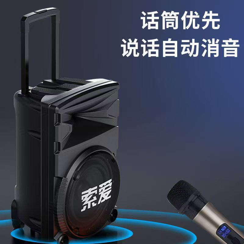 索爱蓝牙音箱店铺专用广场舞音响户外唱k歌移动拉杆带无线话筒