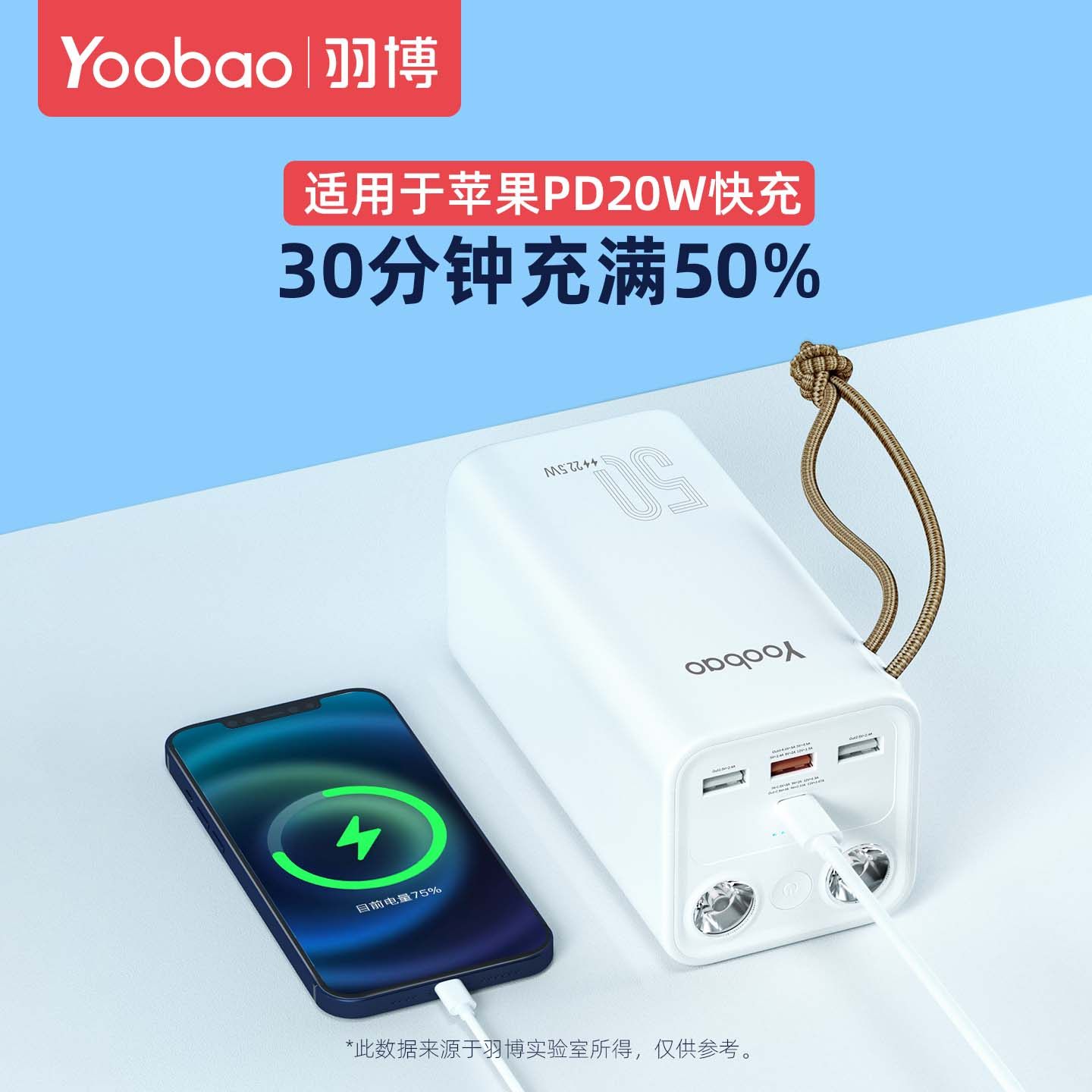 yoobao羽博充电宝50000毫安大容量充电宝官方旗舰店正品5w五万毫安充电宝2025新款22.5W超级快充手机移动电源