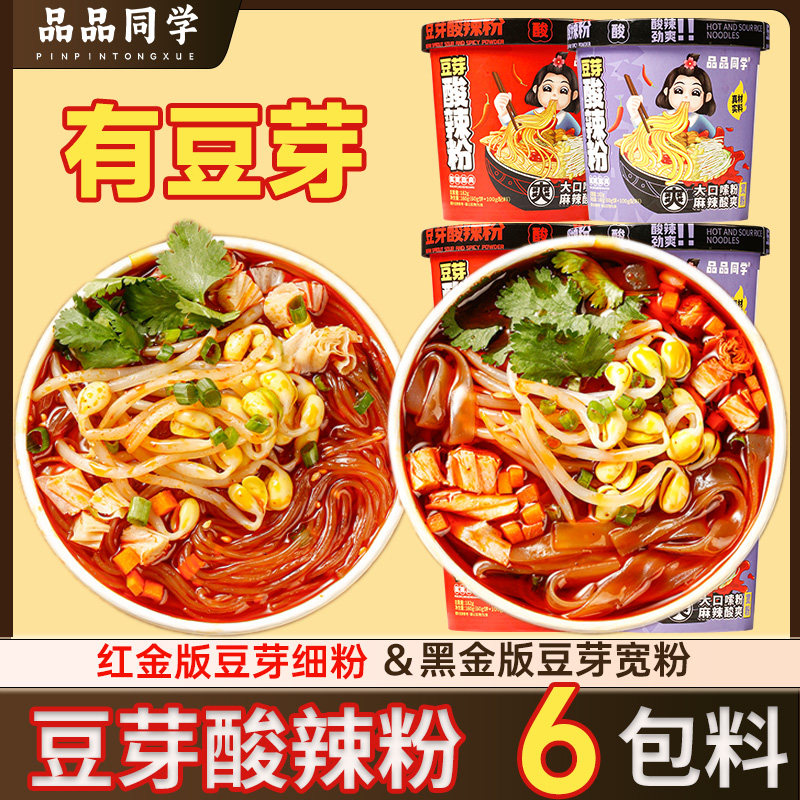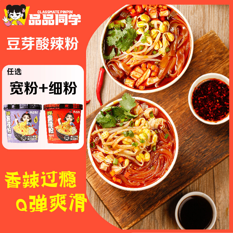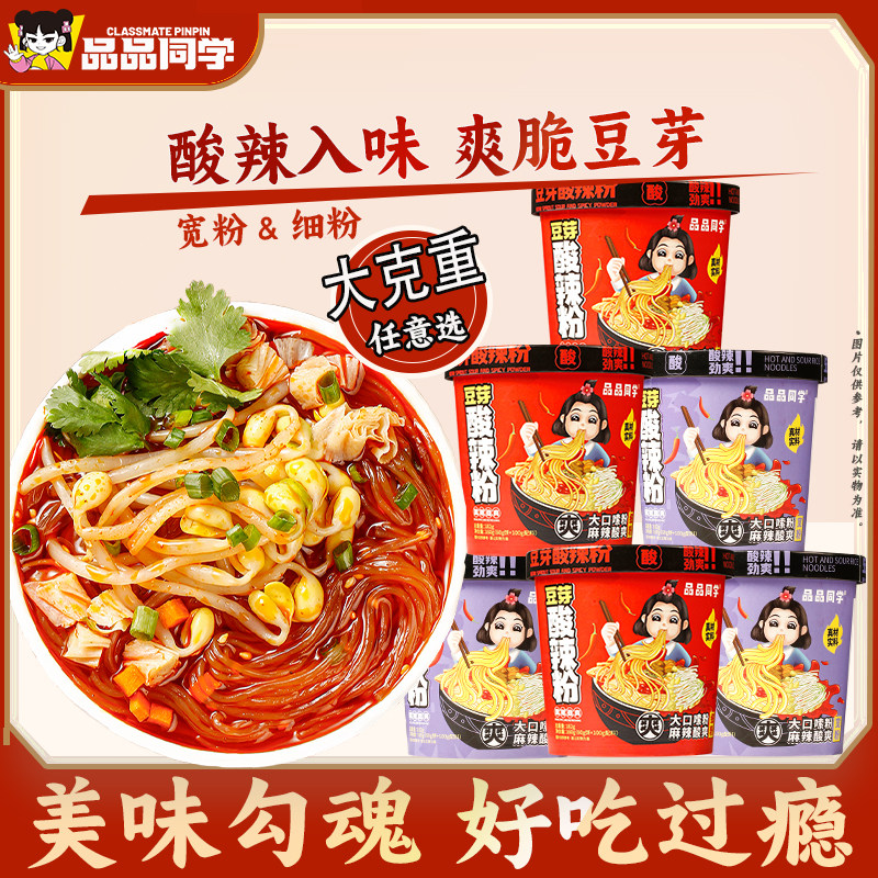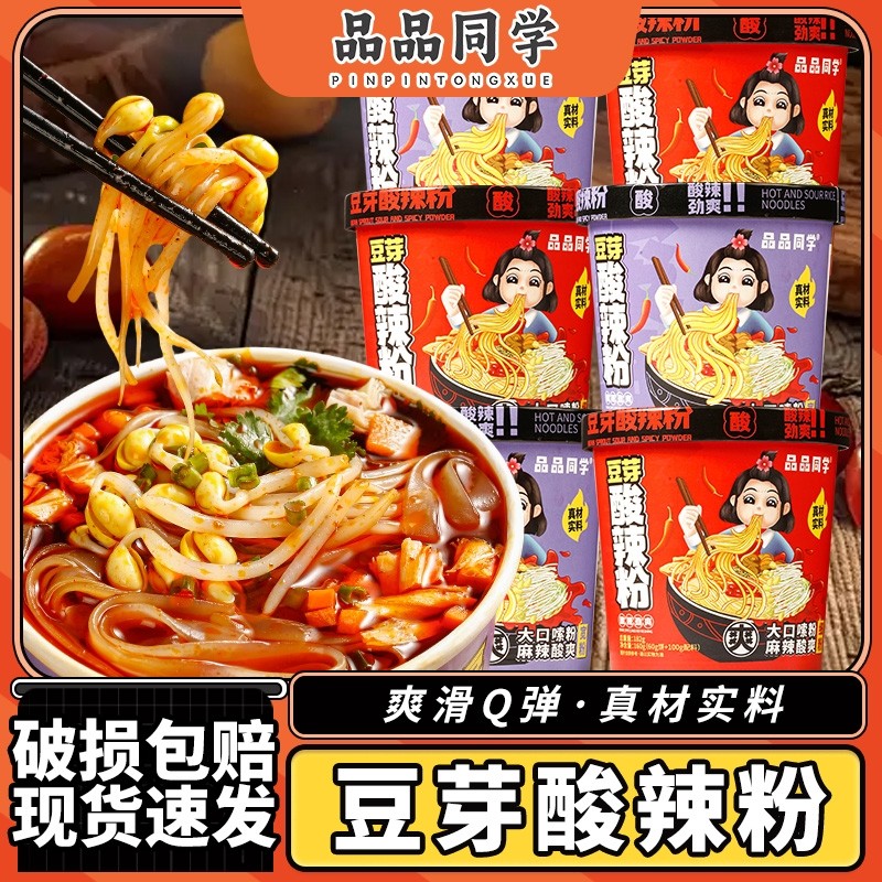 品品同学豆芽酸辣粉桶装粉丝冲泡方便速食宽粉夜宵整箱批发经典
