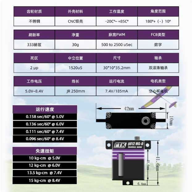 PTK 8812 MG-D数字舵机伺服金属齿轮滑翔机固定翼飞机KST X10同级