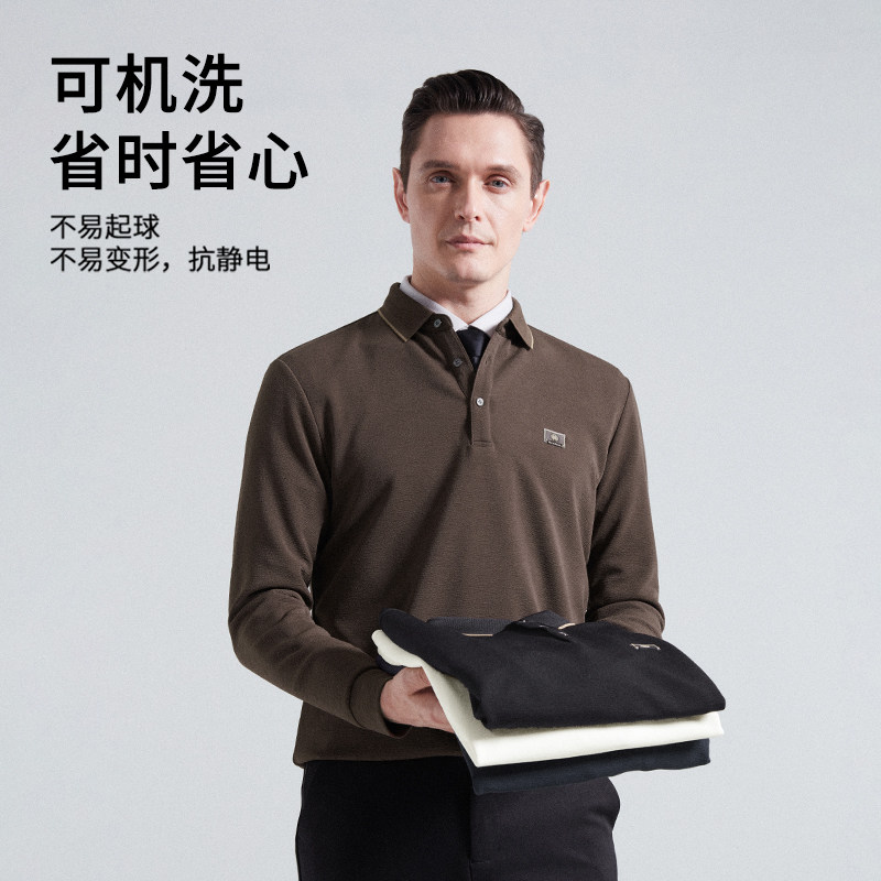 杉杉肌理感男士打底衫长袖翻领t恤POLO衫商务内搭爸爸装高弹上衣