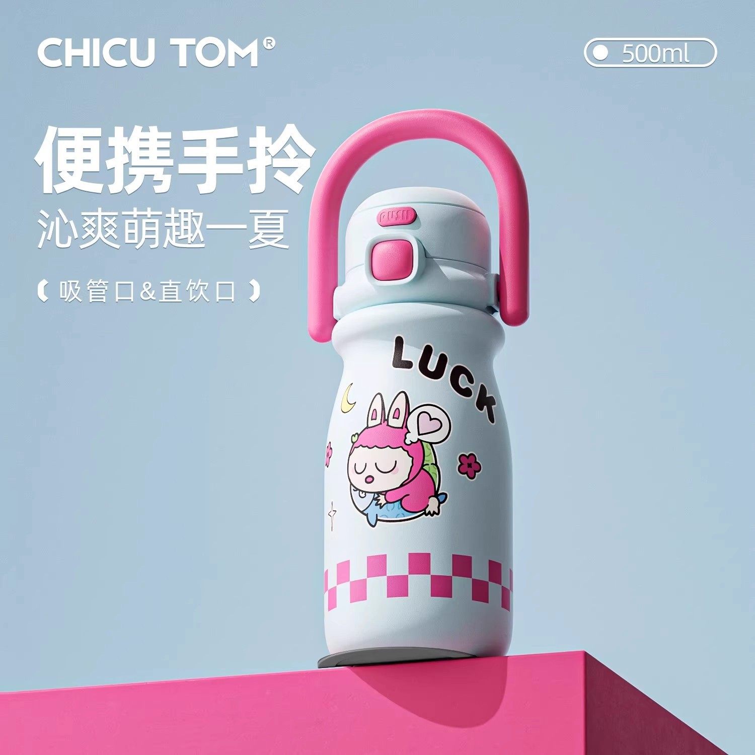 新款便携可爱高颜值卡通保温杯大容量双饮手提水杯高级感拎拎壶