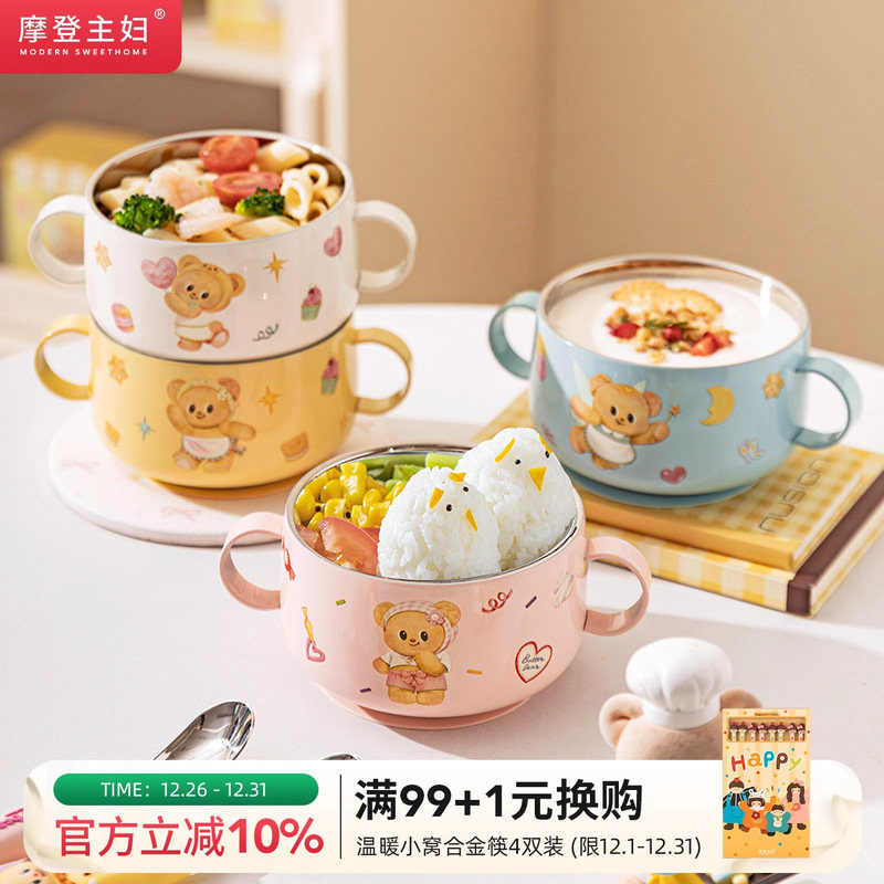 【摩登主妇&黄油小熊】儿童碗316L不锈钢餐具宝宝吃饭专用辅食碗