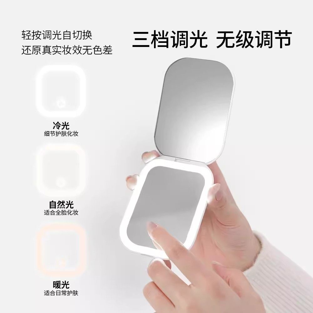 化妆镜折叠梳妆台带灯宿舍台式收纳盒大镜子便携充电电池款精致