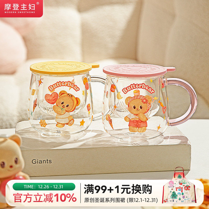 【摩登主妇&黄油小熊】高硼硅玻璃杯茶水分离泡茶杯水杯带盖杯子