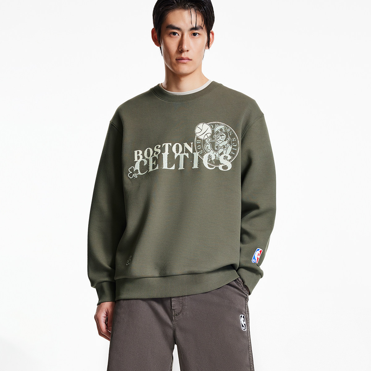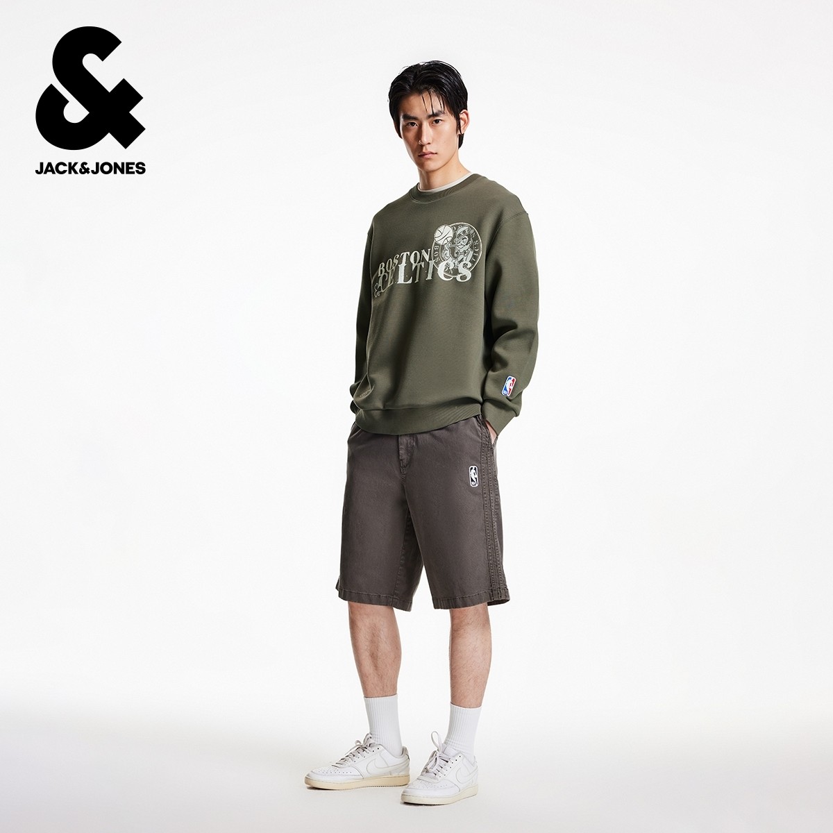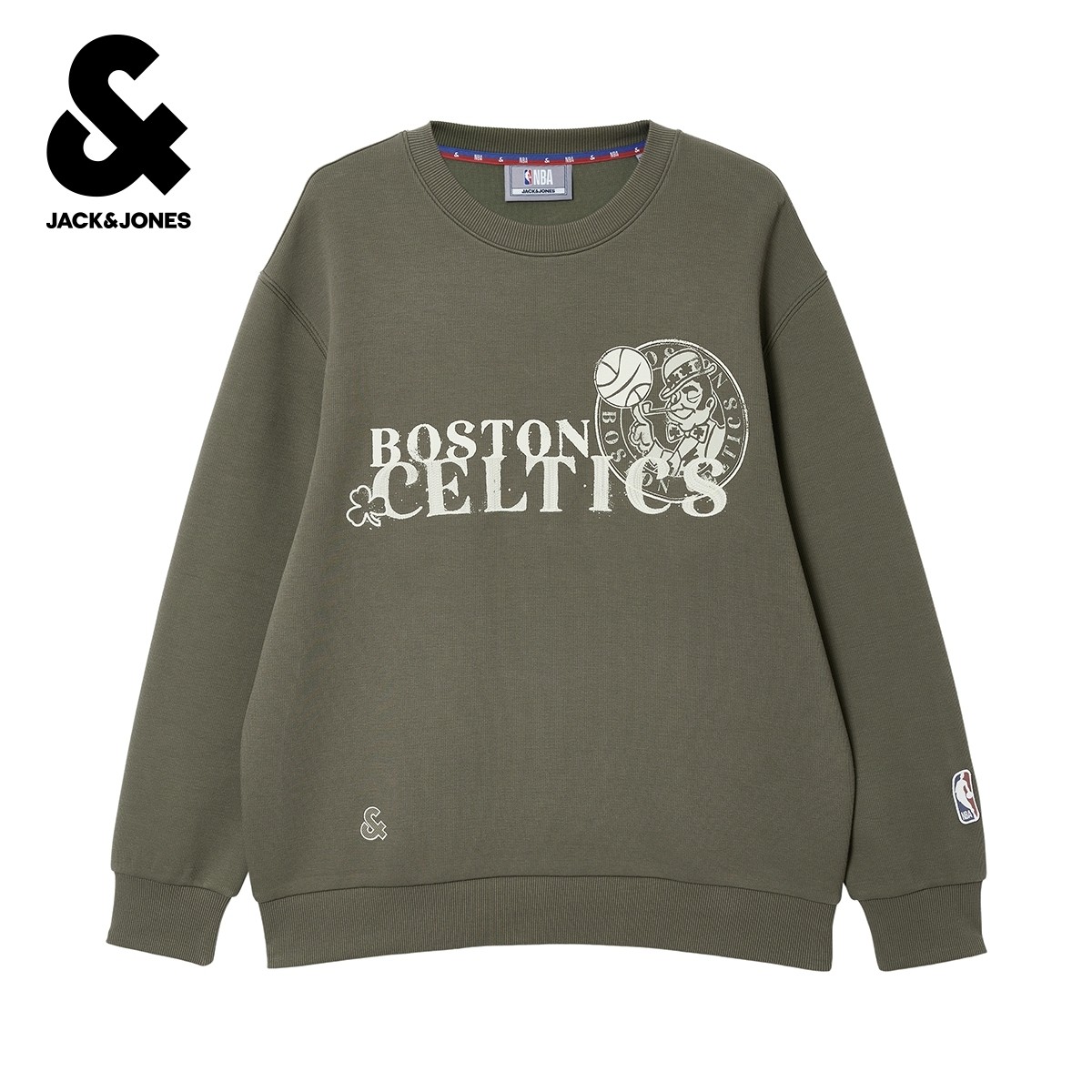 杰克琼斯秋季男装落肩袖宽松卫衣时尚潮流版NBA联名字母刺绣图案