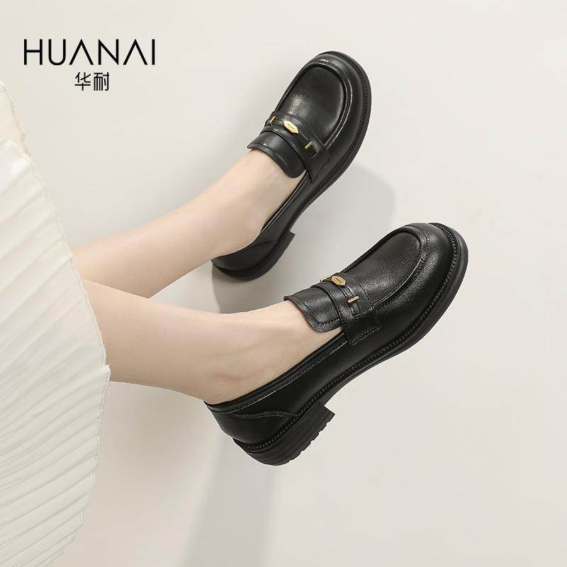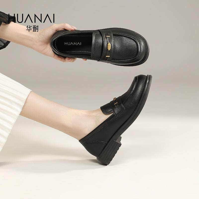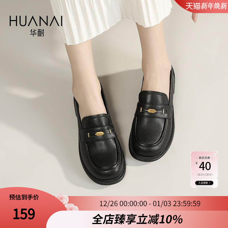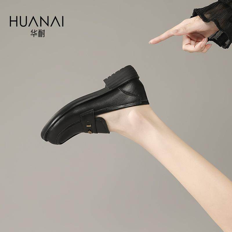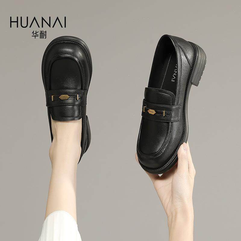 华耐通勤风单鞋女平底气质2025春秋一脚蹬乐福鞋皮鞋开车豆豆鞋