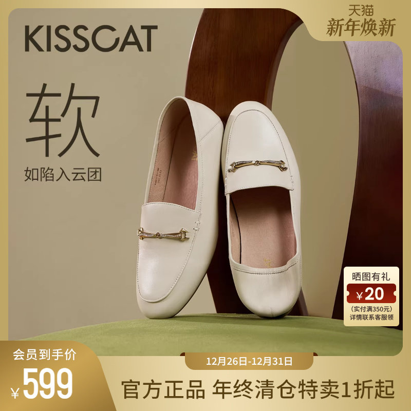 KISSCAT接吻猫[小软包开车鞋]秋新舒适豆豆鞋单鞋皮鞋平底乐福鞋