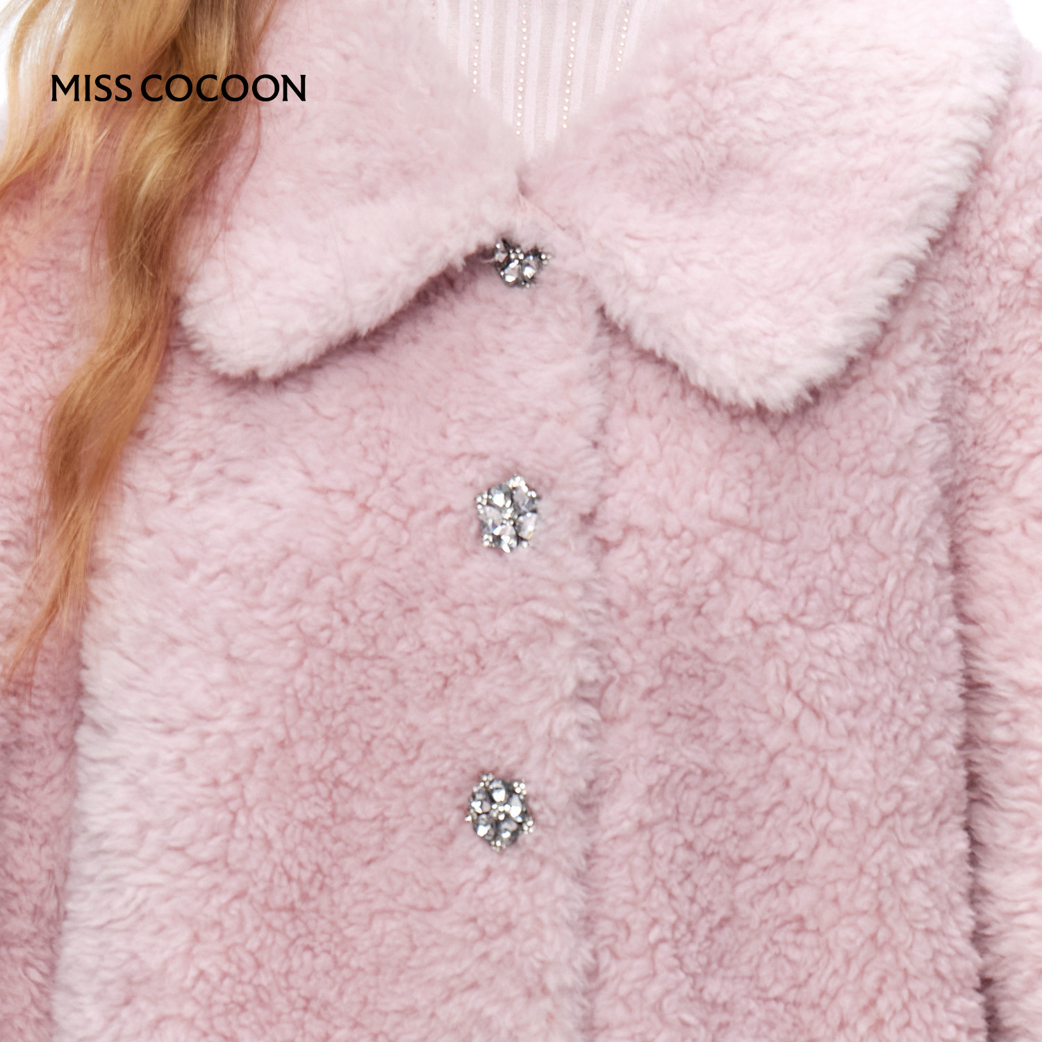 MISSCOCOON可可尼毛绒大衣女2025冬新款千金风翻领绵羊毛皮草外套
