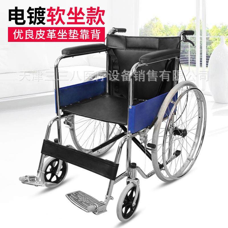 轮椅车折叠轻便老人专用电镀软座带坐便残疾人老年人便携式手推车