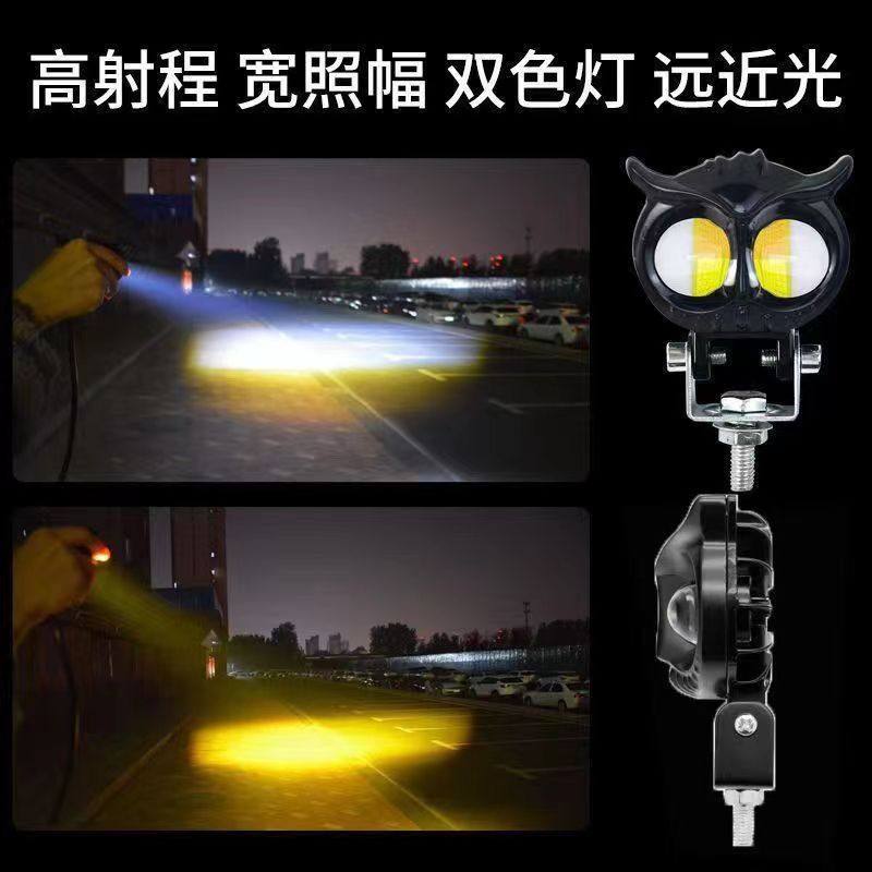 摩托电动车猫头鹰射灯双光切线铺路led护杠车头大灯改装爆闪外置