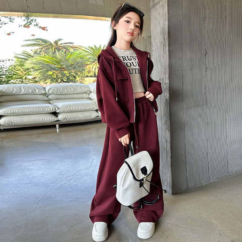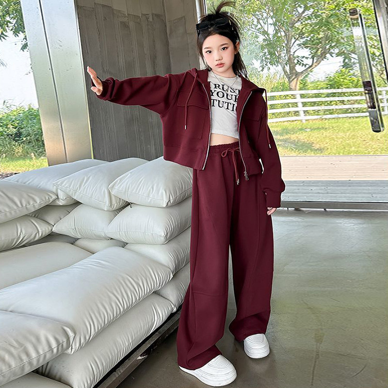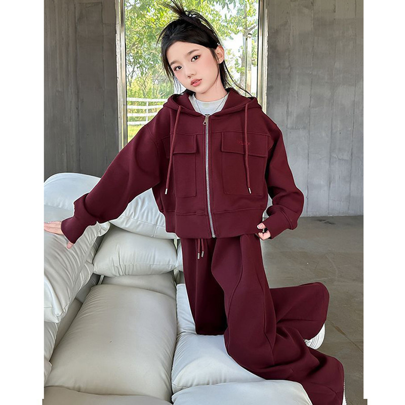 女童加绒套装2026新款儿童洋气穿搭秋冬季开衫卫衣卫裤两件套红色