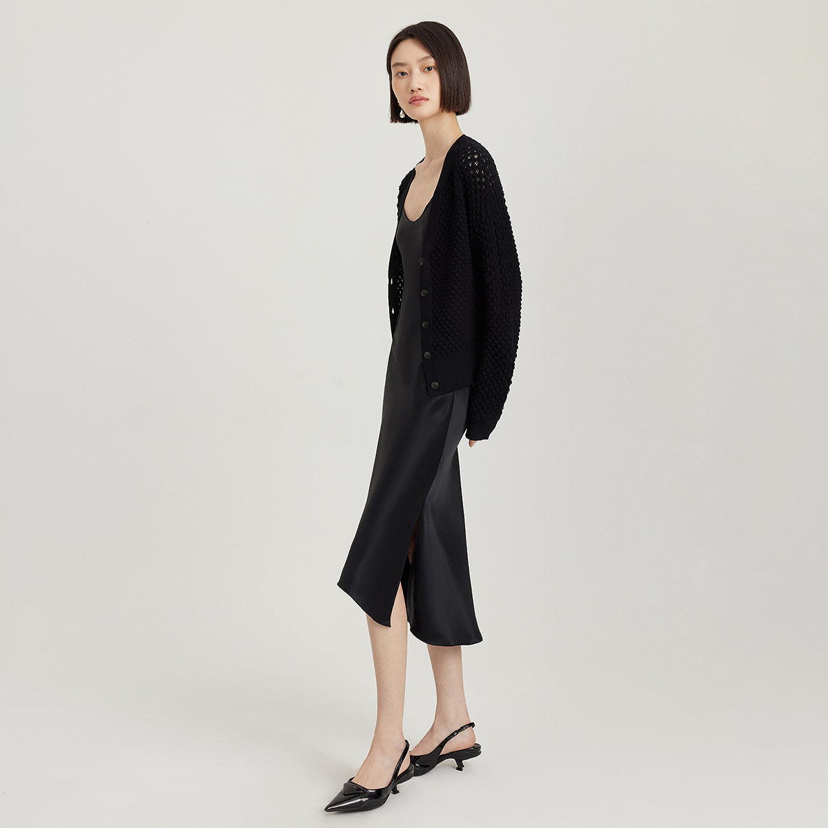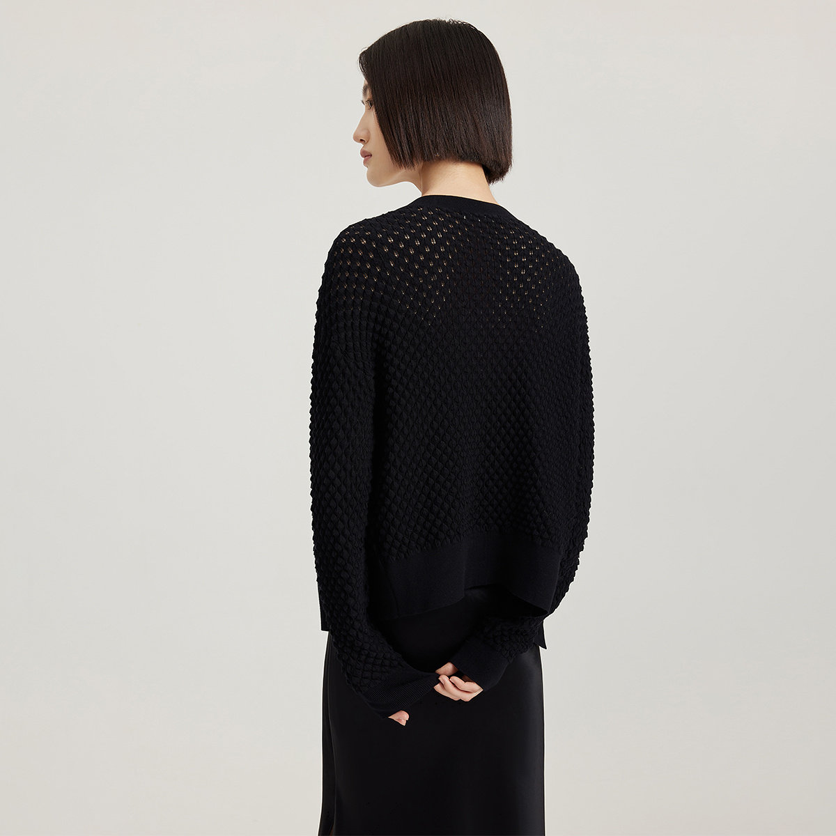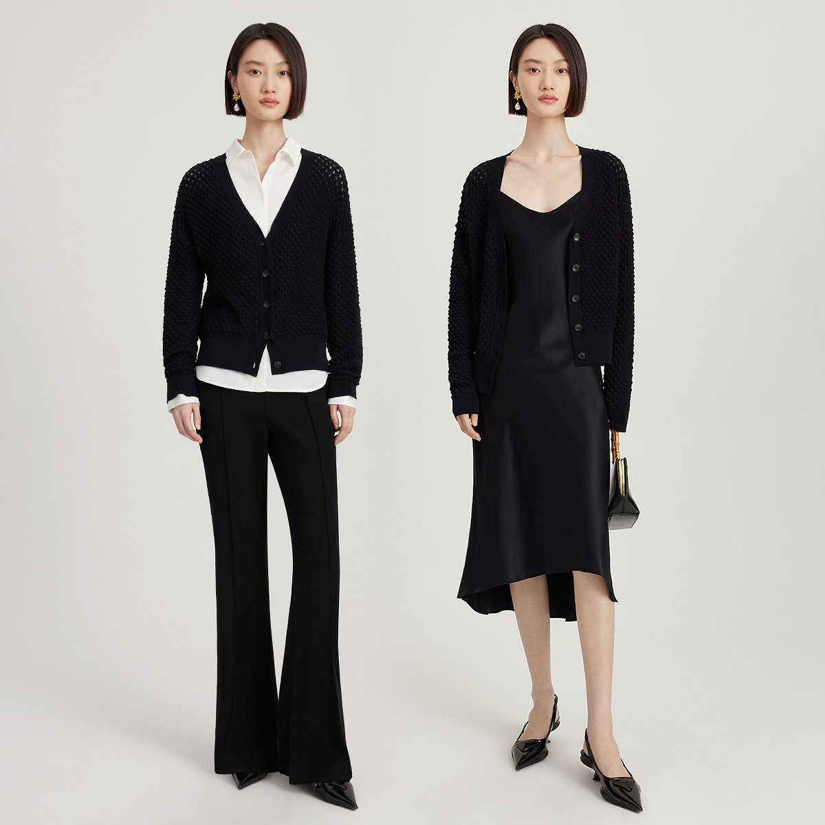 商场同款naivee纳薇秋冬季通勤宽松V领镂空空气感针织开衫毛衣