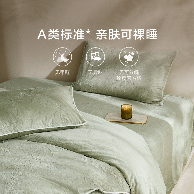 罗莱家纺秋冬新品牛奶绒四件套珊瑚绒被套法兰绒加厚保暖双面绒