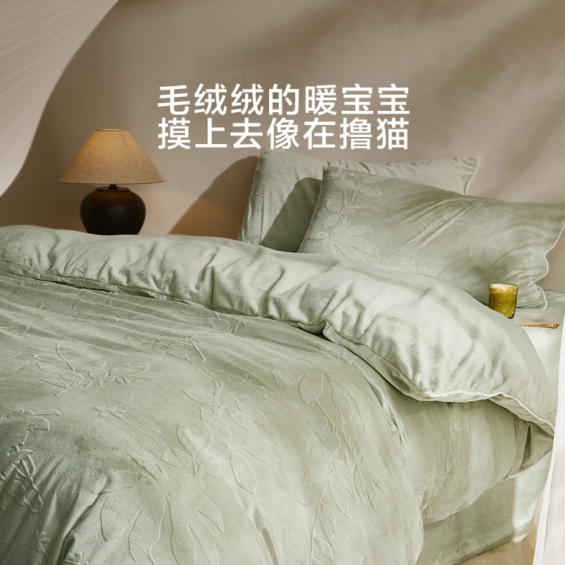 洁丽雅牛奶绒四件套冬季珊瑚绒被套床单加绒毛绒法兰绒床上三件套