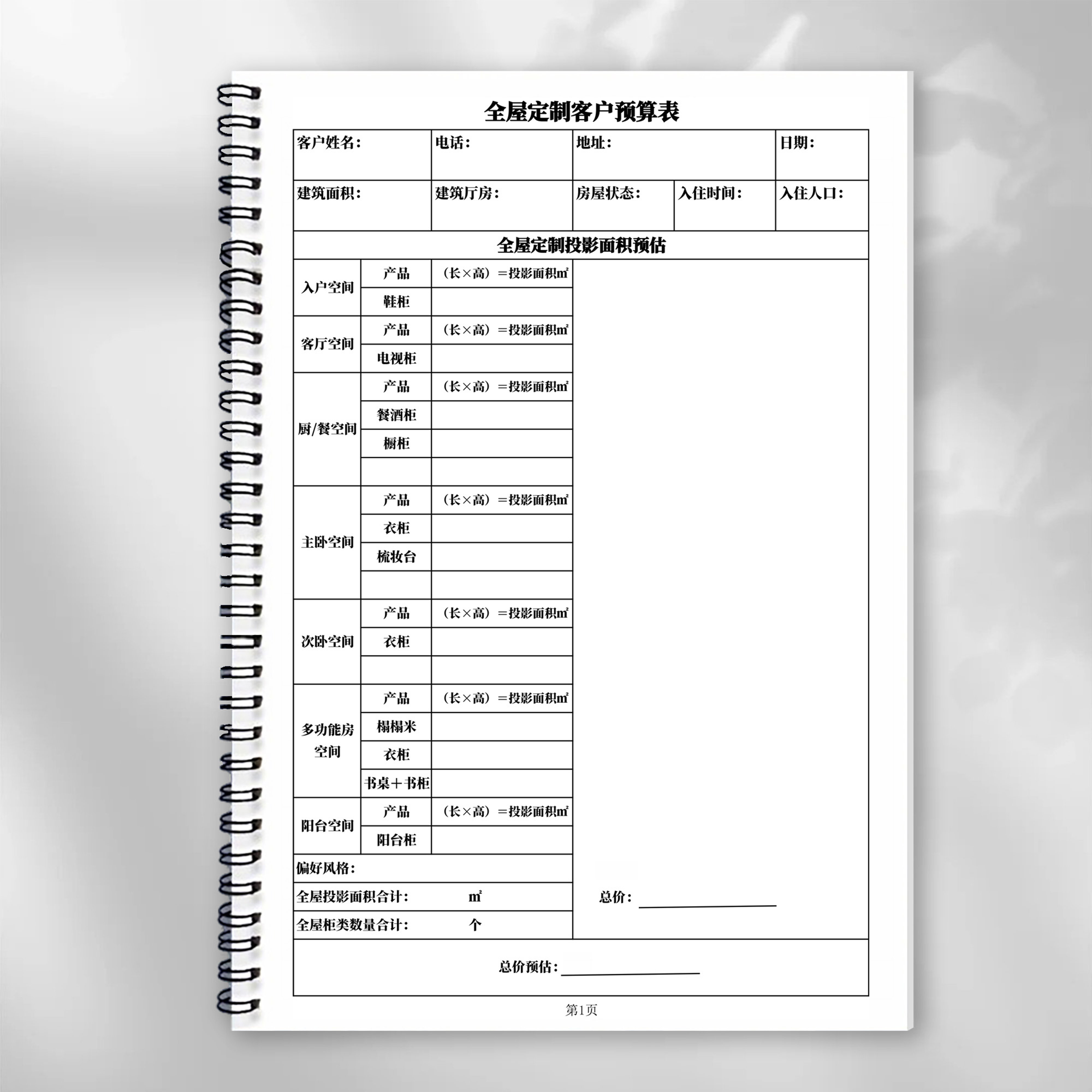 全屋定制客户预算记录本家装工装装修预算表房屋预算明细表全屋家具室内装修客户报价记录设计师量尺报价本子