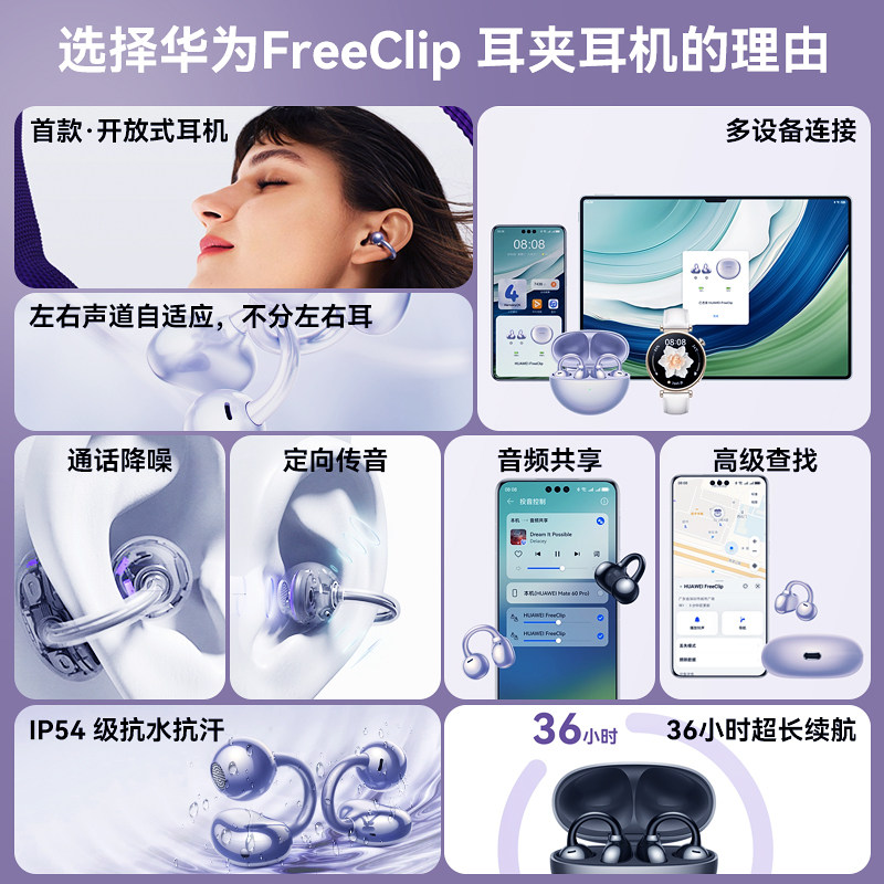华为FreeClip耳夹耳机开放式无线蓝牙华为耳机新品长续航官方正品