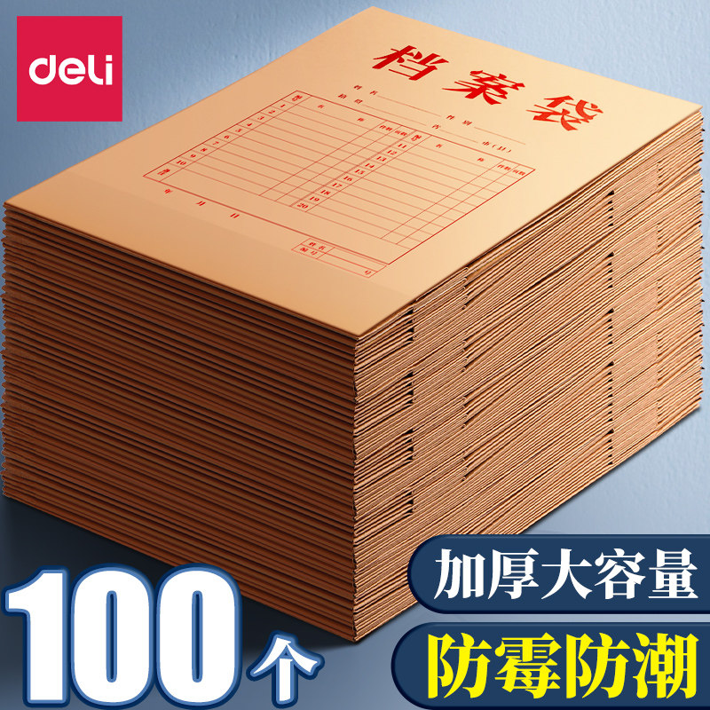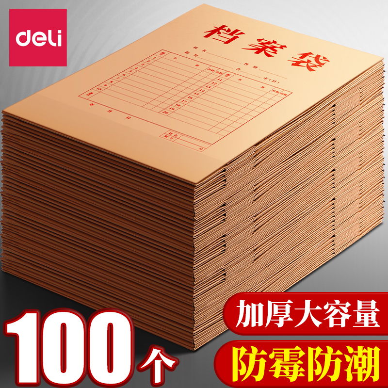 得力100个档案袋牛皮纸加厚纸质a4文件袋资料袋投标合同收纳袋大容量办公用品文件包公文袋证件袋批发卷袋
