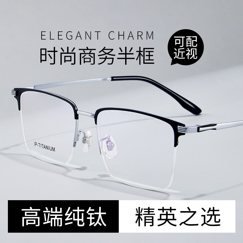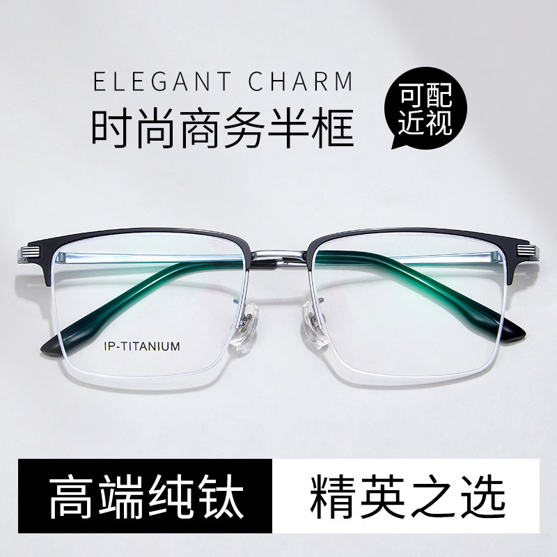 纯钛半框近视眼镜男 时尚商务