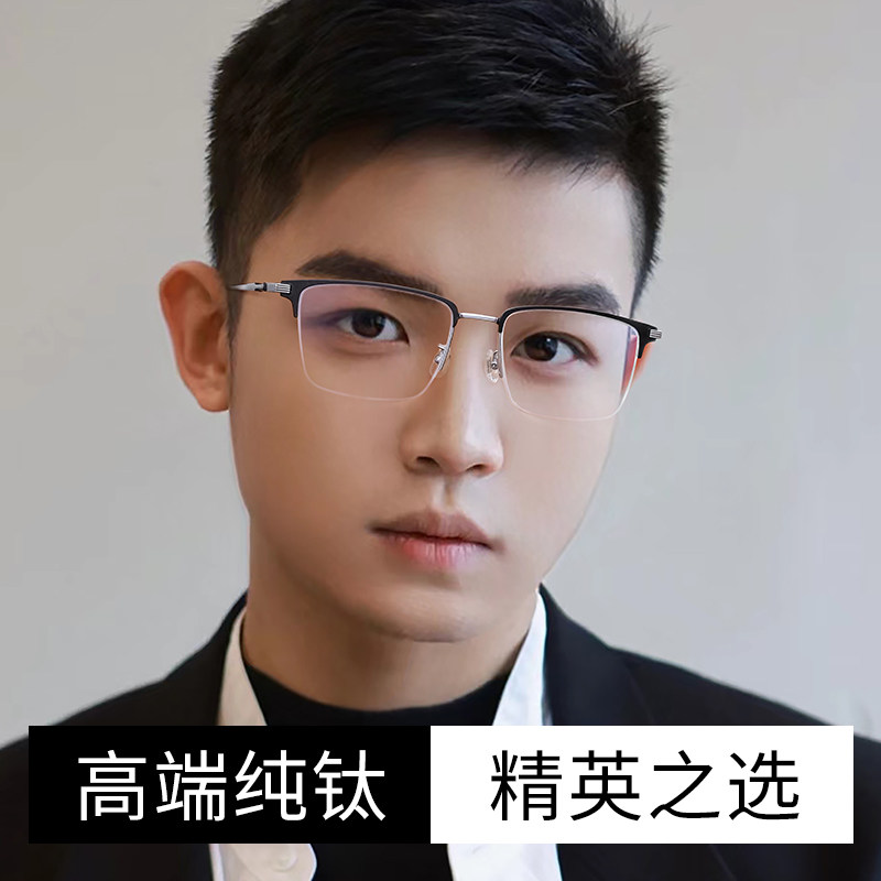 超轻纯钛半框近视眼镜男可配度数网上配防蓝光商务眼睛框镜架男款