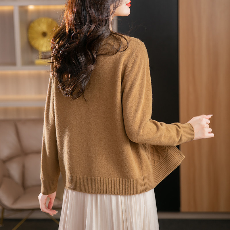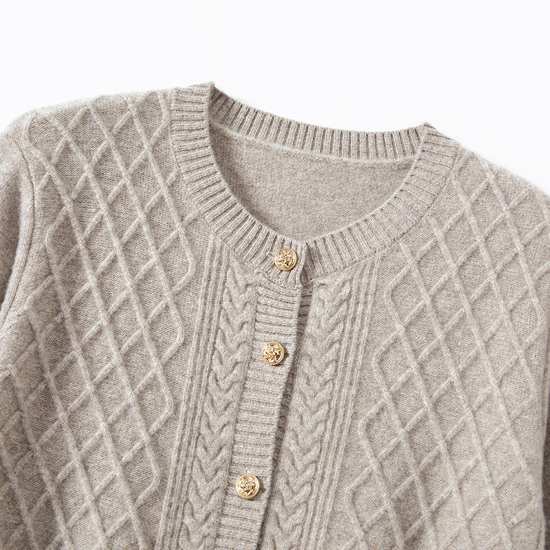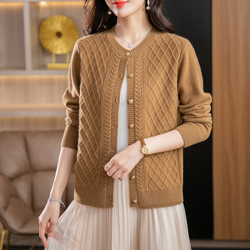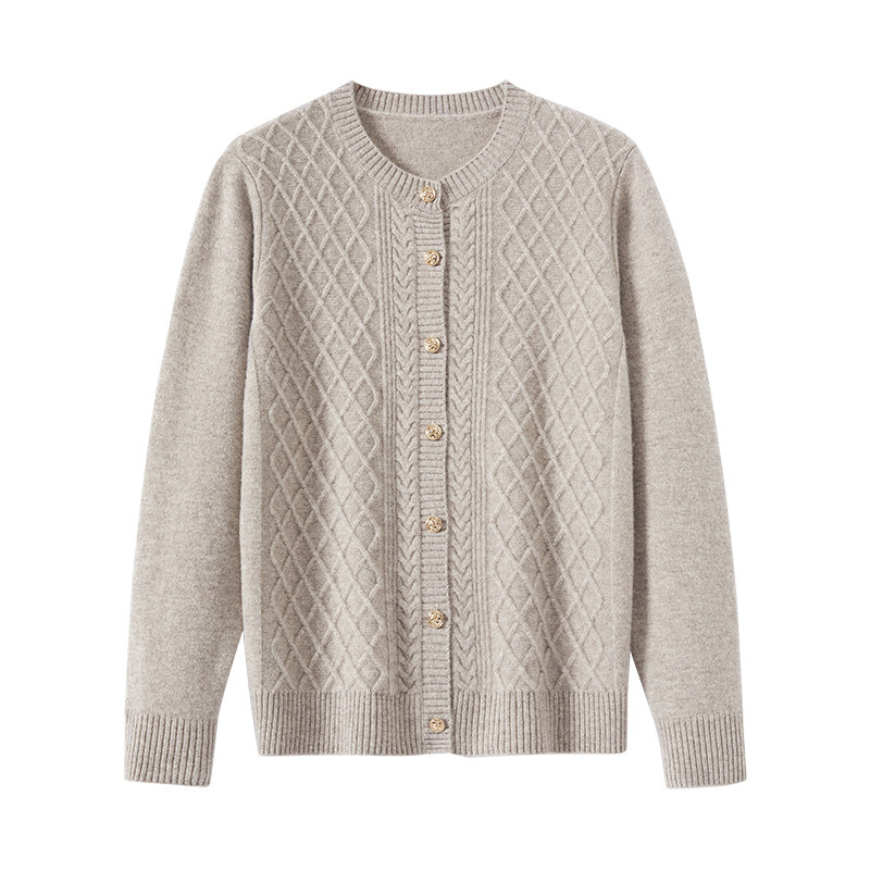 恒源祥2025女装纯羊毛开衫春秋季外套针织衫女单排扣提花宽松毛衣