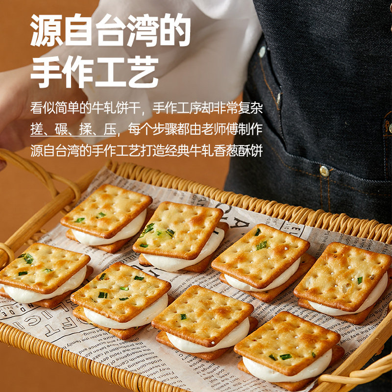 台湾风味!香葱牛轧糖夹心饼干铁盒装牛扎小吃特产休闲小零食