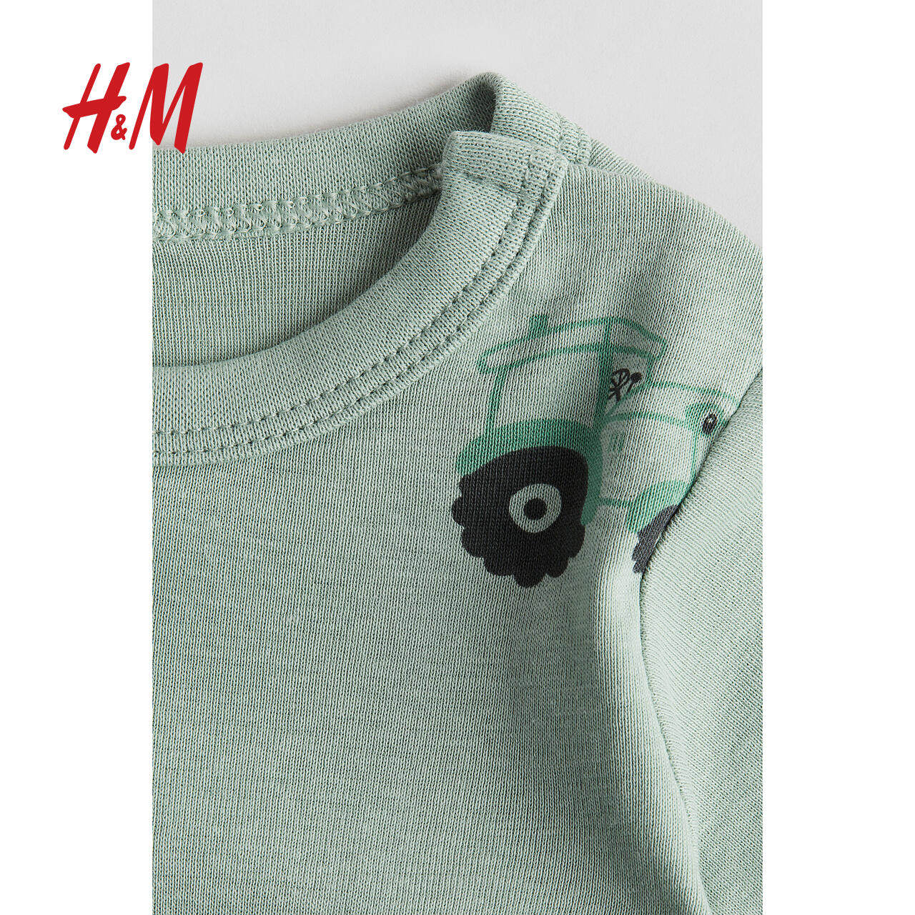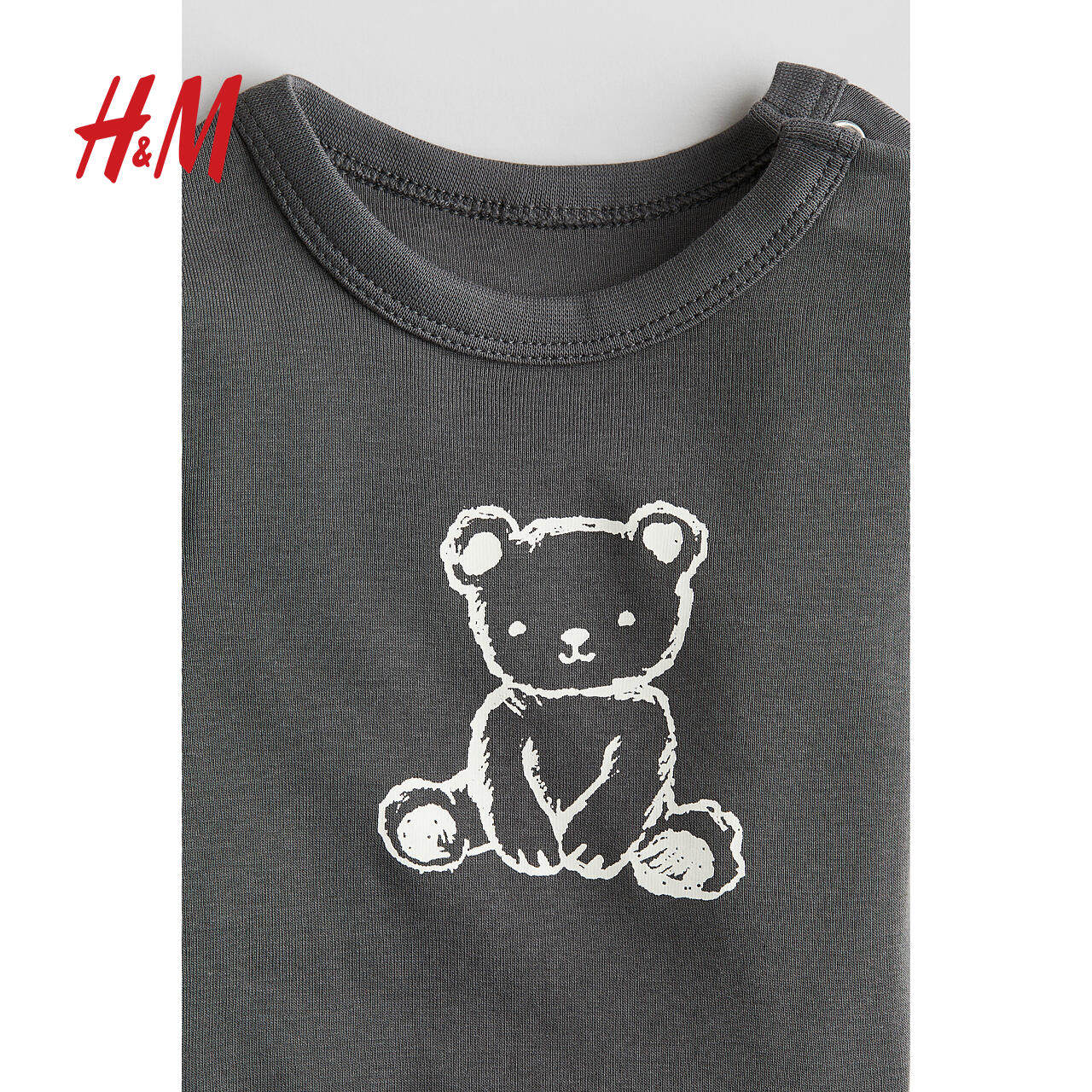 HM童装男婴女婴连体衣冬季内着婴儿印花圆领长袖哈衣爬服1146165