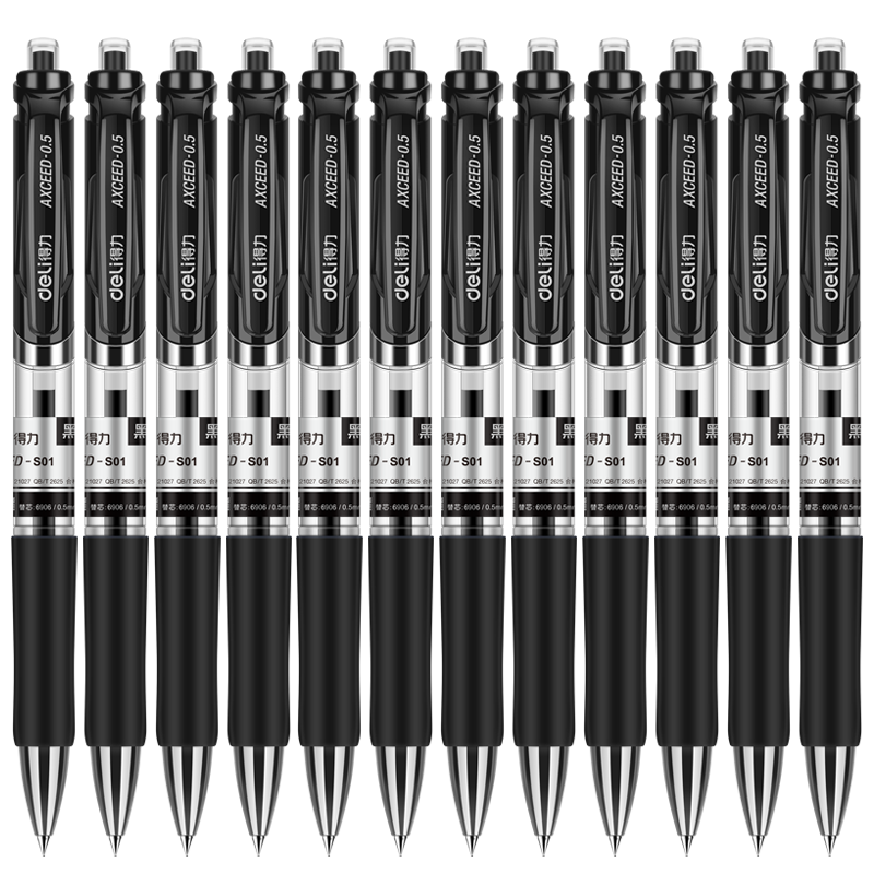 得力中性笔签字笔S01按动中性笔办公学生考试专用笔0.5碳素笔水笔