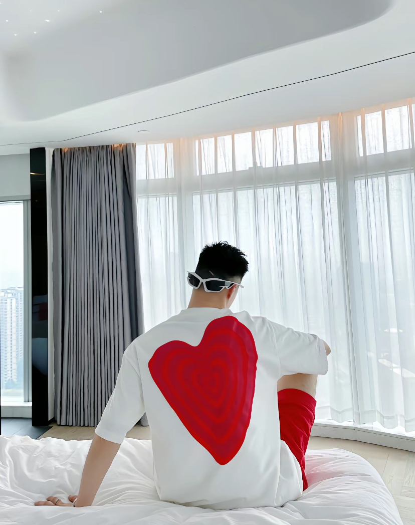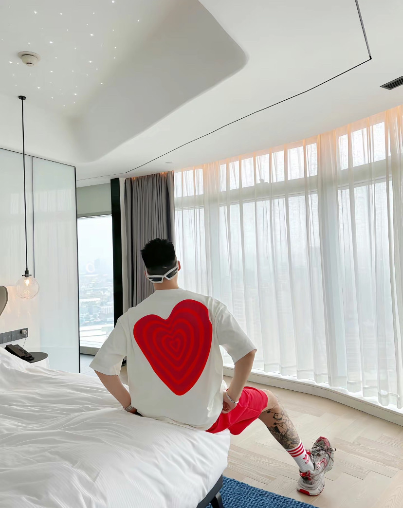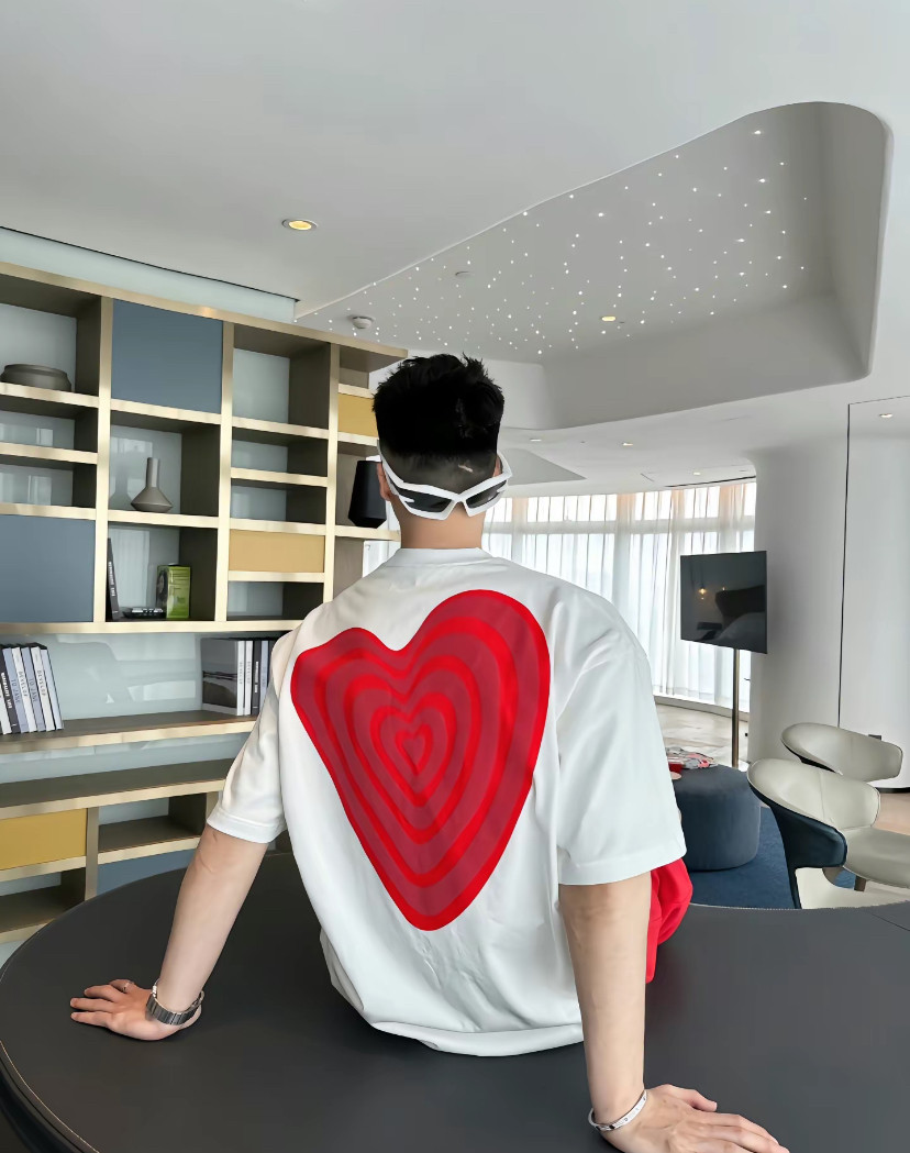 【陈发财】FA CAI手绘爱心潮红色字母印花宽松百搭小领口T恤短袖