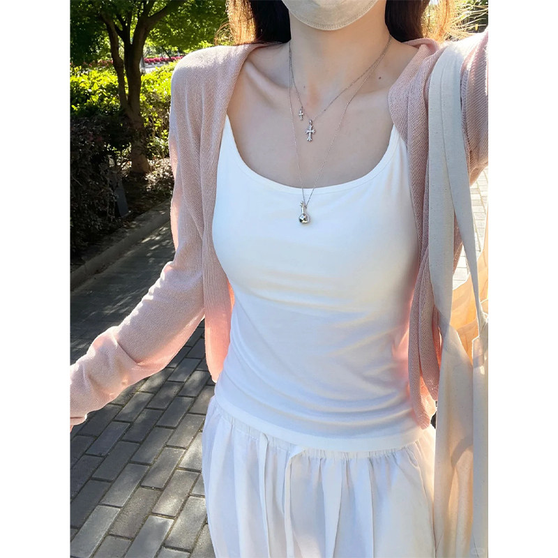 莫代尔吊带背心女夏薄款纯色无袖打底衫修身百搭简约内搭U领上衣