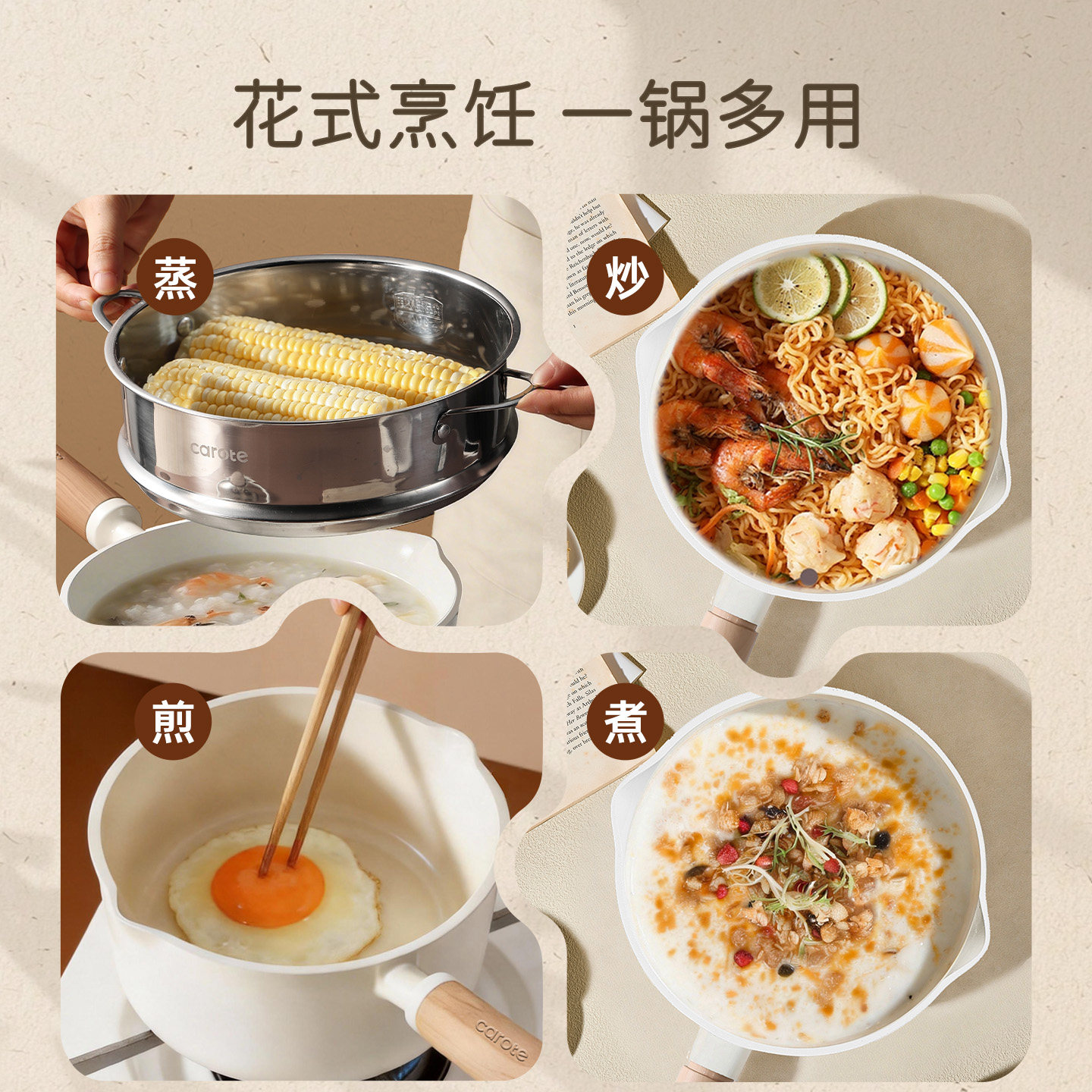 卡罗特奶锅辅食锅钛陶瓷不粘锅婴儿宝宝蒸煮一体小汤锅家用泡面锅