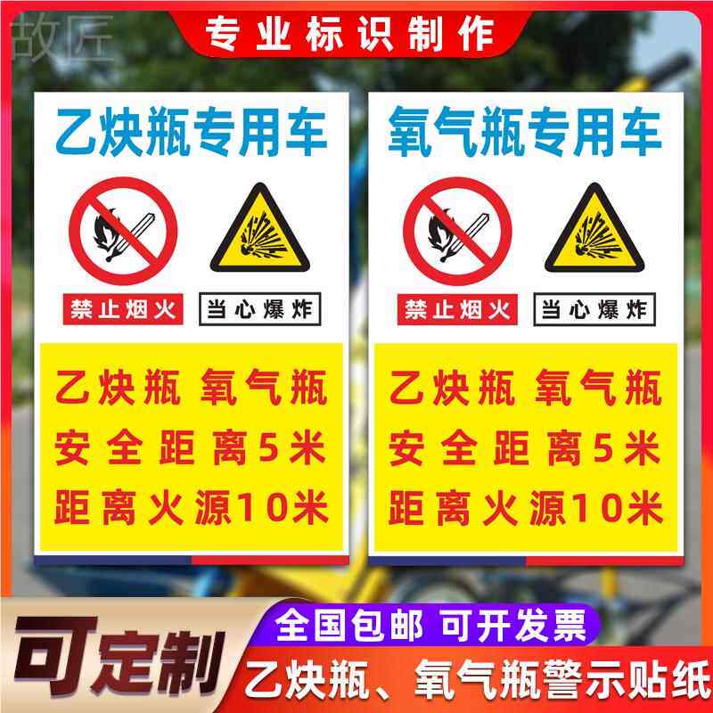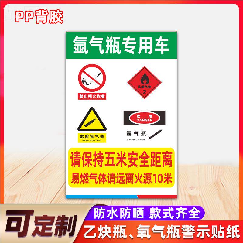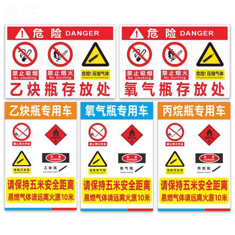 乙炔瓶氧气瓶专用车贴纸氩气二氧化丙烷气瓶手推车警示标志危险品易燃易爆存放处警告牌定制危险风险标识牌