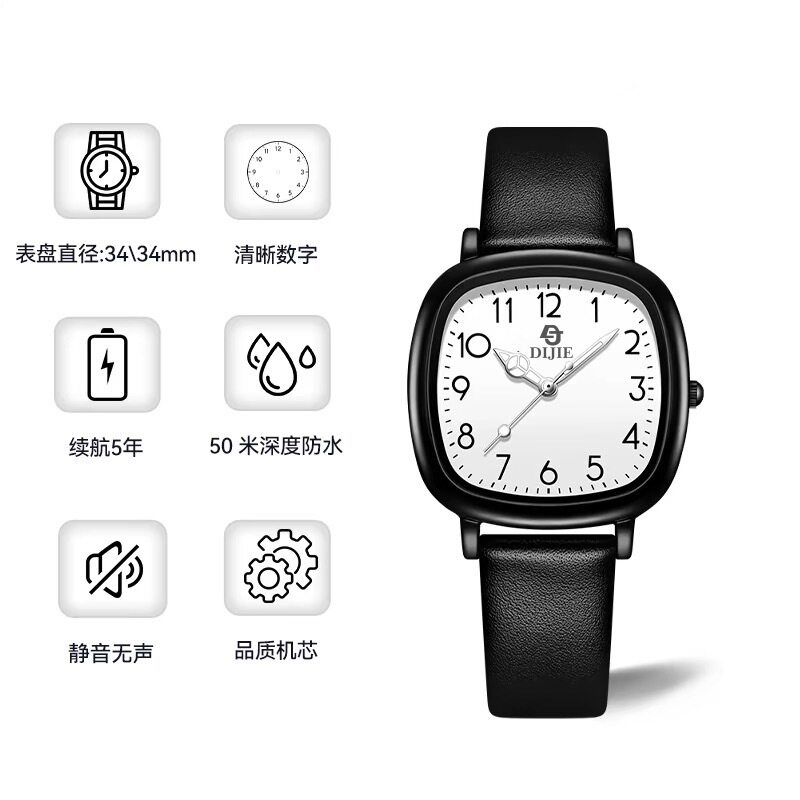 静音学霸考试专用手表男女初高中学生简约防水夜光儿童机械石英表