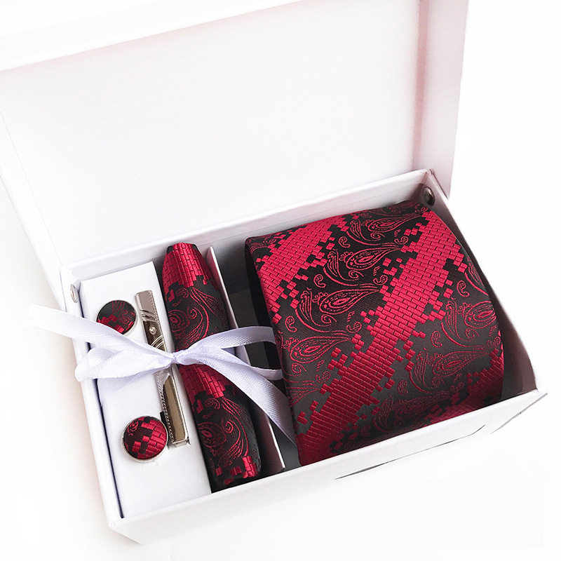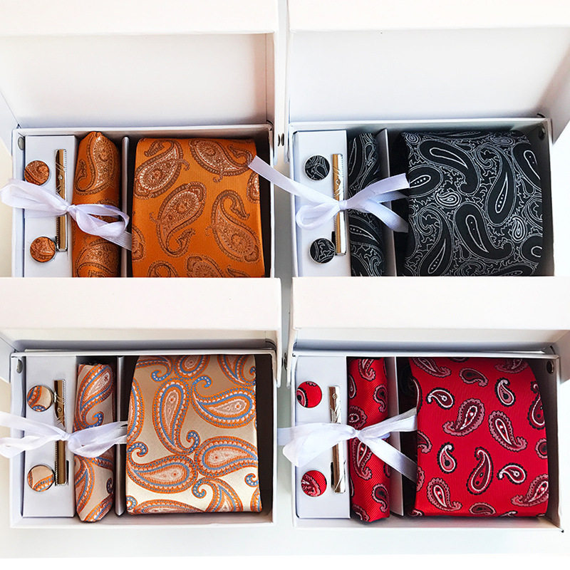 厂家现货商务行政男士领带领结口袋巾袖口领带夹6件套礼盒领带