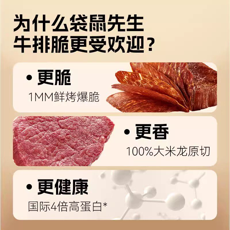 袋鼠先生牛脆脆安格斯牛排脆超薄牛肉片风干高蛋白牛肉干零食健身