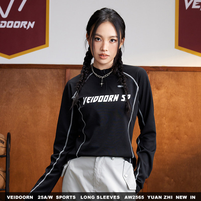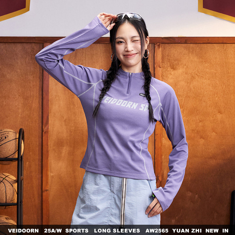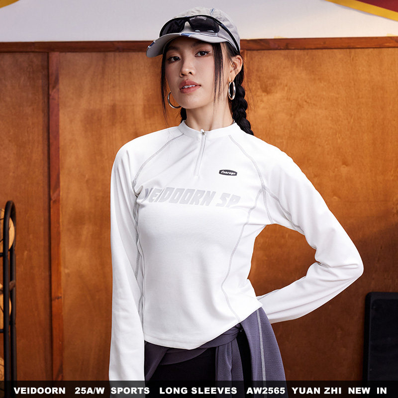 维动远志专业速干运动长袖女士半拉链T恤打底衫跑步健身训练上衣