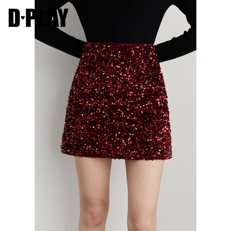 【新年服饰节】DPLAY2025年新款气质时尚百搭亮片半身裙A字短裙女