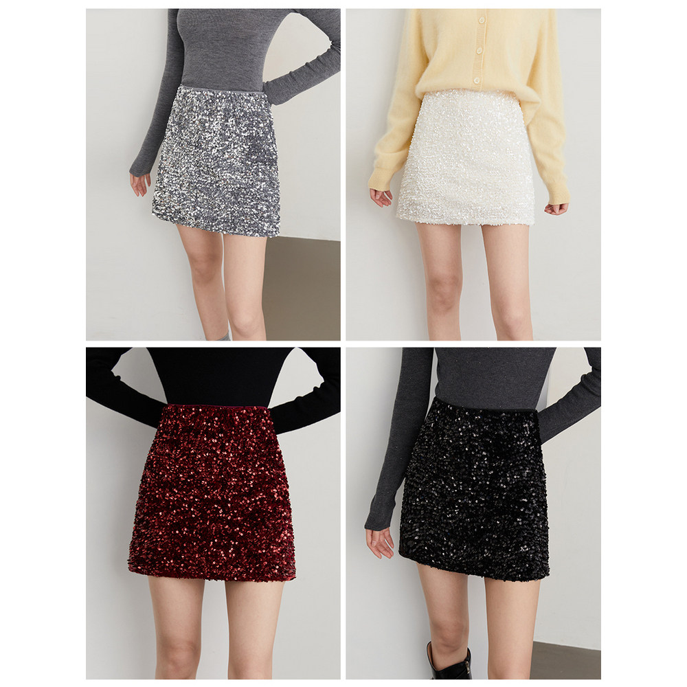 亮片绒感面料半身裙,腰部宽弹力带