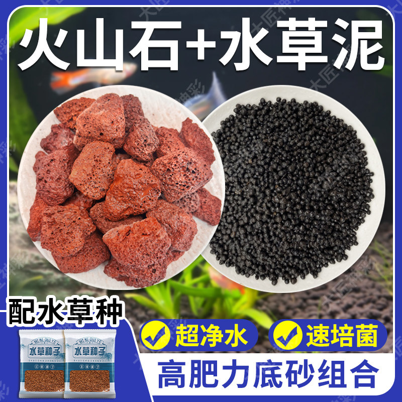 火山石水草泥鱼缸造景底部砂石古法养鱼基肥水培水族滤材套餐水质