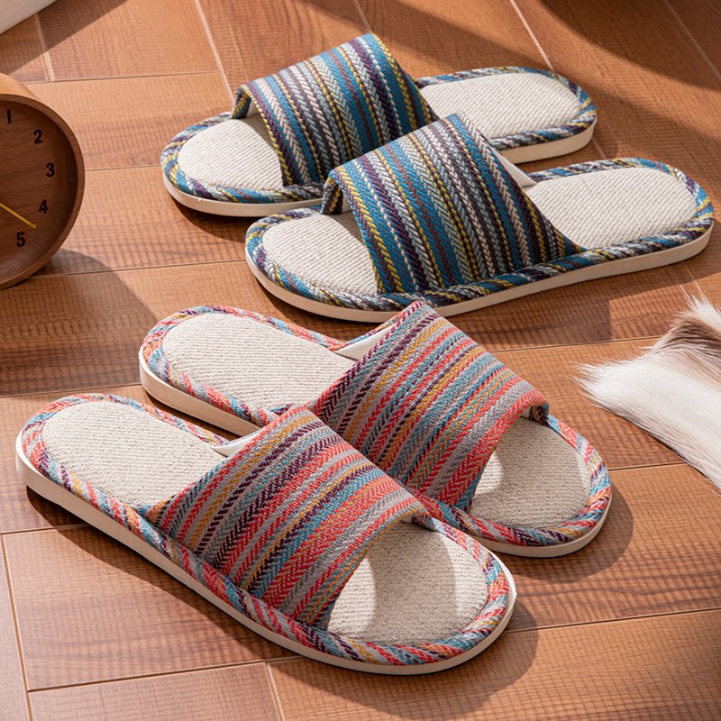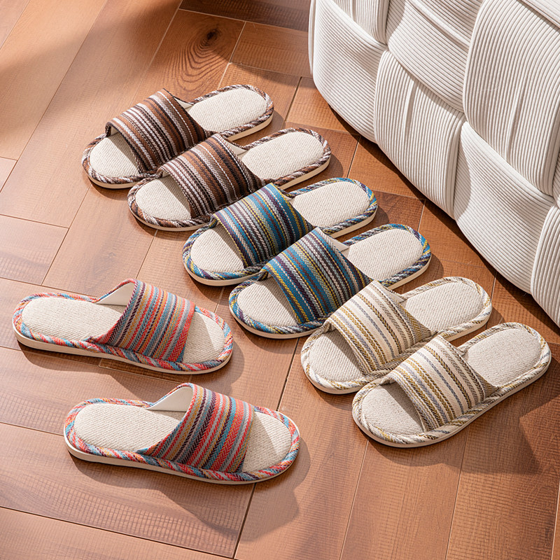 买1送1亚麻拖鞋女士情侣家居一对静音防滑家用招待客人棉麻拖鞋男