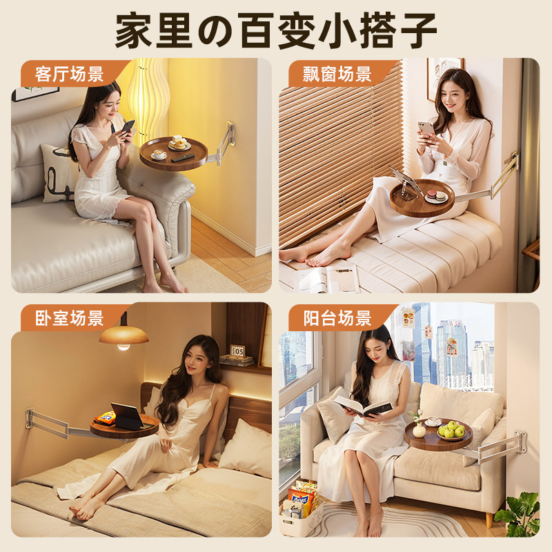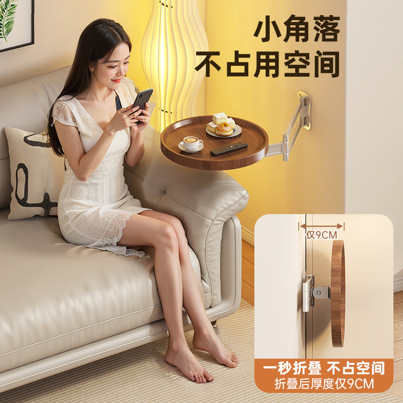 床头柜替代品家用卧室圆形墙上置物架出租房小户型可折叠床头柜子