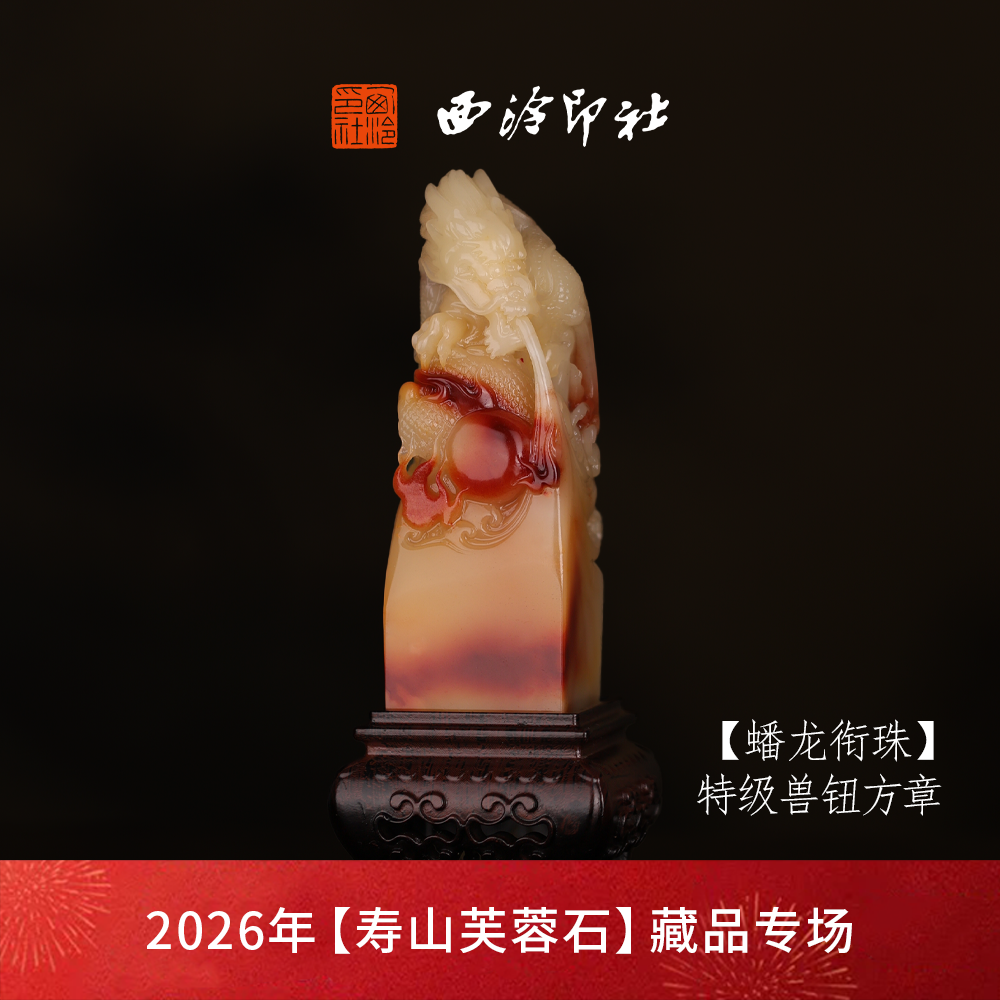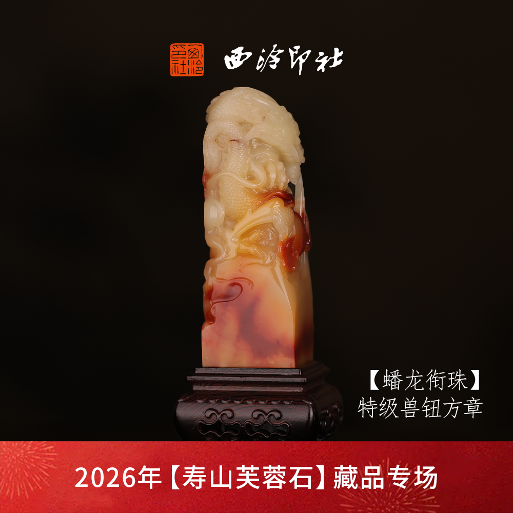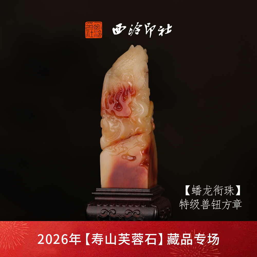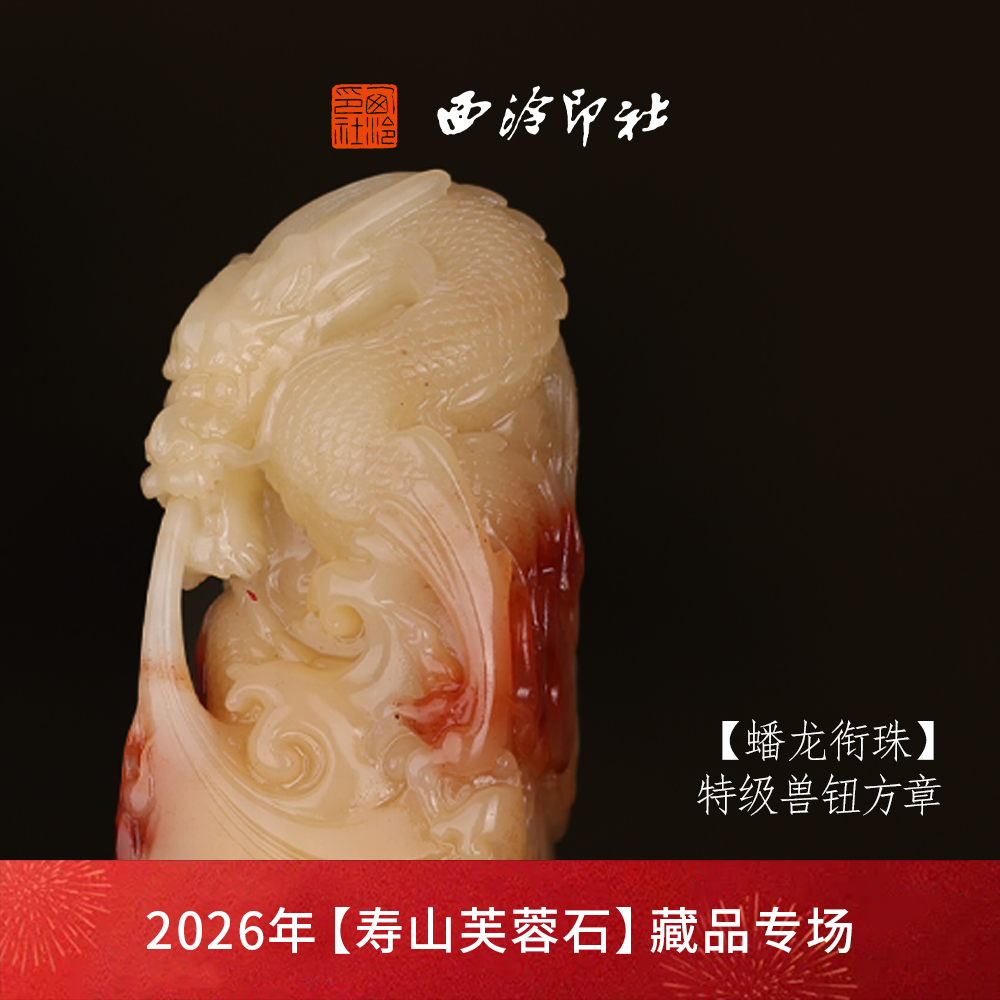 【特级】西泠印社寿山芙蓉石兽钮方章《蟠龙衔珠》高档石材印章书法国画手工篆刻玉石方章定制落款孤品章