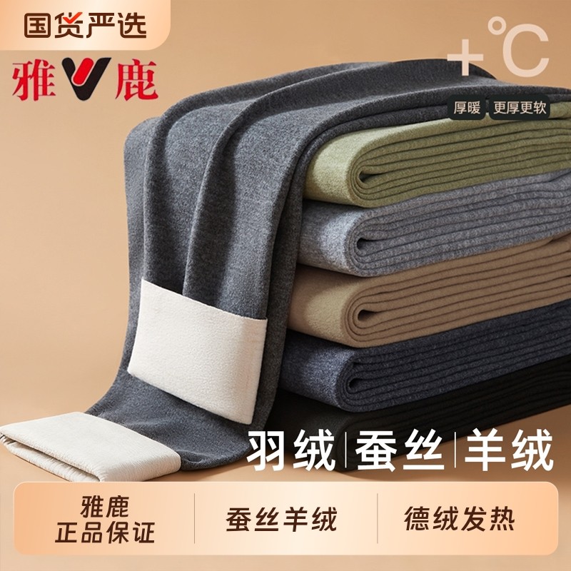 雅鹿男士德绒发热无痕保暖裤羊绒蚕丝秋裤薄款棉毛裤内穿绒裤冬季