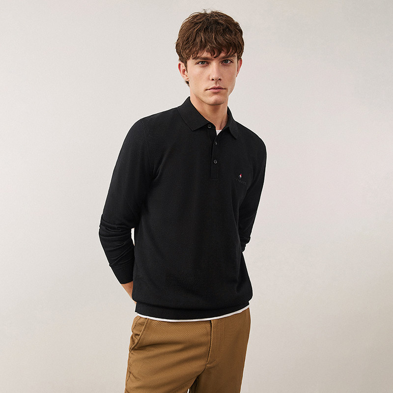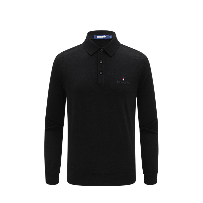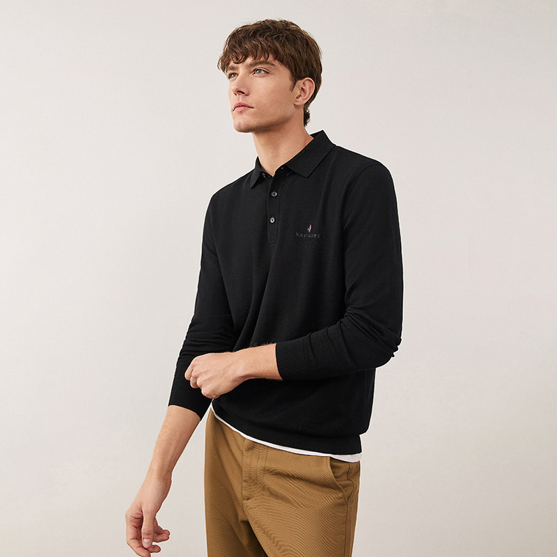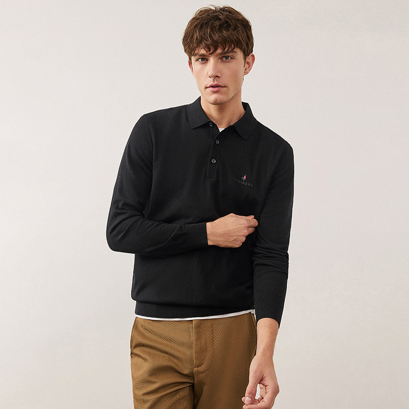 [可机洗羊毛]Navigare意大利小帆船黑色休闲毛衣男针织长袖POLO衫