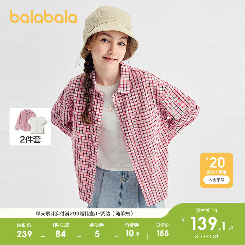 巴拉巴拉童装女童衬衫儿童长袖2026休闲春短袖两件套时尚潮酷运动