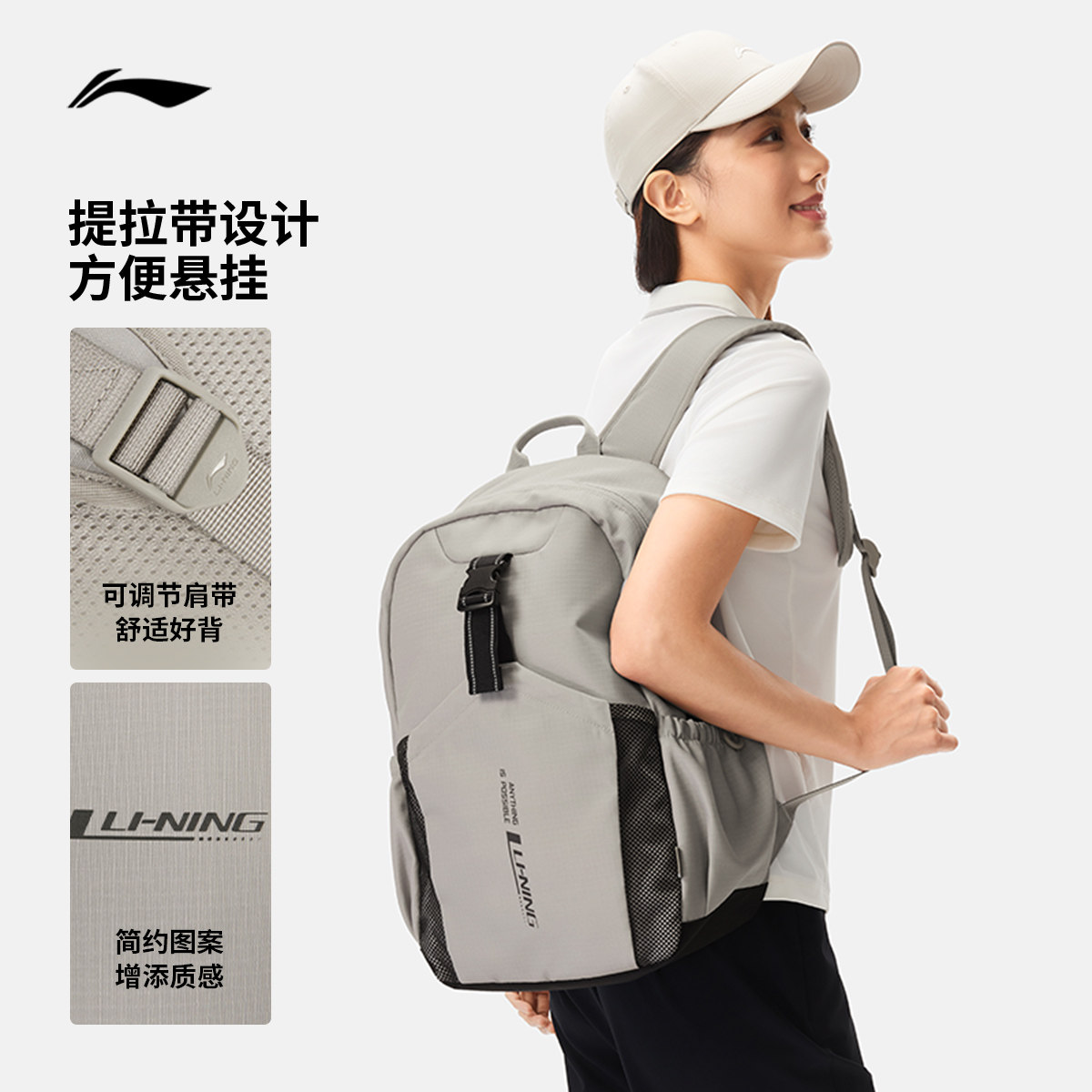 李宁双肩包男包女包2026新款健身系列背包学生书包反光运动包